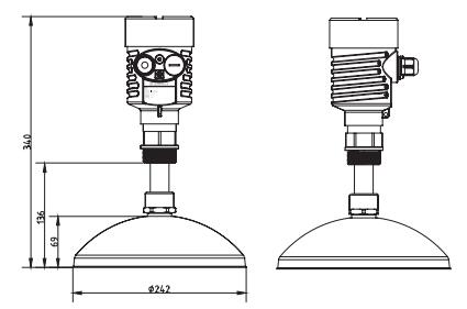 SKD58拋物面雷達物位計 SKD58拋物面雷達物位計測量最大距離可達80米。天線被進一步優(yōu)化處理,新型的快速的微處理器可以進行更高速率的信號分析處理,使得儀表可以用于如:反應(yīng)釜或固體料倉非常復(fù)雜的測量條件。 原理 拋物面雷達物位計天線發(fā)射較窄的微波脈沖,經(jīng)天線向下傳輸,微波接觸到被測介質(zhì)表面后被反射回來,再次被天線系統(tǒng)接收并將其傳輸給電子線路部分自動轉(zhuǎn)換成物位信號。(因為微波傳播速度極快,電磁波到達目標并經(jīng)反射返回接收器這一來回所用的時間幾乎是瞬間的) SKD58拋物面雷達物位計參數(shù) 應(yīng)??用:固體料、過程容器或強粉塵易結(jié)晶、結(jié)露場合 測量范圍:80米 過程連接:螺紋、法蘭 介質(zhì)溫度:-40~250℃ -60~400℃ 過程壓力:常壓 精??度:±15mm 頻率范圍:26GHz 防爆等級:Exb IIBT4 Gb 防護等級:IP67 信號輸出:4~20mA/HART(兩線/四線)RS485/Modbus SKD58拋物面雷達物位計外型尺寸圖 ![]() SKD58拋物面雷達物位計安裝 ![]() SKD58拋物面雷達物位計選型
