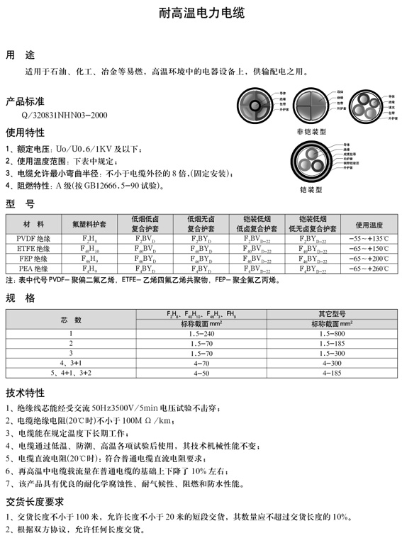 氟塑料絕緣和護(hù)套耐高溫電纜