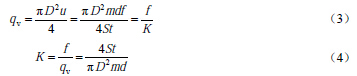 1.引言 渦街流量計(或稱旋渦流量計)是一種基于流體振蕩原理的新型速度式流量儀表。它的輸出信號是與流量成正比的脈沖頻率信號或標準電流信號,可遠距離傳輸,并且輸出信號僅與流量有關(guān),不受流體的溫度、壓力、成分、粘度和密度的影響。它具有量程比寬,結(jié)構(gòu)簡單,無運動件,檢測元件不接觸被測流體,具有測量精度好、應用范圍廣、使用壽命長等特點。因此,渦街流量計自20世紀60年代末誕生以來,發(fā)展異常迅速,許多研究者進行了大量的工作,開發(fā)出了眾多類型的渦街流量計,并大量生產(chǎn)投放市場,像這樣在短短幾年時間內(nèi)就達到從實驗室樣機到批量生產(chǎn)過程的流量計還是僅有的。 然而,在經(jīng)歷了20世紀80~90年代的“渦街熱”以后,渦街流量計的發(fā)展放慢了步伐。由于對這種新型儀表的生產(chǎn)、設計、選型和應用方面的經(jīng)驗不足,面對各行各業(yè)千差萬別的現(xiàn)場和測量對象,有些問題逐步暴露出來,如安裝條件和方式對測量的影響等。對于安裝條件(即各種使用條件下所必須的直管段長度)的要求,不同儀表廠家都會給出一個比較合理的建議值。但是,對于安裝方式(即流量計水平安裝或垂直安裝)給渦街流量計造成的影響,一般都沒有涉及。本文通過相同條件下的實驗研究,定量地討論和比較了水平、垂直兩種安裝方式對渦街流量計測量的影響。 2.渦街流量計測量原理 在流體中垂直于流向插入一根非流線型柱狀物體(即旋渦發(fā)生體),當流速大于一定值時,在柱狀物兩側(cè)將產(chǎn)生兩排旋轉(zhuǎn)方向相反、交替出現(xiàn)的非對稱的旋渦列(即卡門渦街),如圖1所示,通過檢測渦街產(chǎn)生的頻率,根據(jù)有關(guān)的關(guān)系式得到流體的流量。 設旋渦的發(fā)生頻率為f,被測介質(zhì)來流的平均速度為u,旋渦發(fā)生體迎面寬度為d,管道內(nèi)徑為D,根據(jù)卡門渦街原理,有如下關(guān)系式: 式中u1為旋渦發(fā)生體兩側(cè)的平均流速,m/s;St為斯特勞哈爾數(shù),量綱為1;m為旋渦發(fā)生體兩側(cè)弓形面積與管道橫截面面積之比,量綱為1。 管道內(nèi)流體的體積流量qv為: 式中K為渦街流量計的儀表系數(shù),Hz/(m3/h)。 式(3)就是渦街流量計測量的基本關(guān)系式,其中K除與旋渦發(fā)生體、管道的幾何尺寸有關(guān)外,還與斯特勞哈爾數(shù)有關(guān)。斯特勞哈爾數(shù)為無量綱參數(shù),它與旋渦發(fā)生體形狀及雷諾數(shù)有關(guān),在ReD = 2×104 ~ 7×106范圍內(nèi),St可視為常數(shù),這是儀表正常工作范圍。同時可以看到,渦街流量計輸出的脈沖頻率信號不受流體物性和組分變化的影響,即儀表系數(shù)在一定雷諾數(shù)范圍內(nèi)僅與旋渦發(fā)生體及管道的形狀尺寸等有關(guān)。 3. 渦街流量計的安裝方式 在工程實際應用中,渦街流量計通常有如圖2所示的幾種安裝方式[10],其中(a)、(b)、(c)三種方式都屬于水平安裝;(d)則為渦街流量計的垂直安裝。對不同的流體應采用不同的安裝方式。普通液體、氣體、含水量液體的氣體、低溫氣體和液體、含微量固體顆粒的液體和氣體等可采用(a)、(c)、(d)方式安裝;高溫液體、高溫氣體、蒸汽可采用(b)、(c)、(d)方式安裝;濕飽和蒸汽可采用(a)、(c)、(d)方式安裝;液-氣(含微量氣體)、液-固(含微量固體)和液-液兩項流中,如果氣、固相不超出可測量范圍,建議首先采用(d)方式安裝。 4. 實驗及結(jié)果討論 4.1 實驗裝置與過程 實驗裝置結(jié)構(gòu)如圖3所示,水穩(wěn)壓罐為管路提供恒定的水壓,使實驗時流量穩(wěn)定,水流量的大小由調(diào)節(jié)閥來調(diào)節(jié),流量范圍為2~20 m3/h。電磁流量計作為標準流量表給出進入實驗段的水的標準流量值,精度為0.5%。渦街流量計分別按照水平和垂直兩種方式安裝在實驗管路中,它們都具有足夠長的前、后直管段長度,并且其它安裝條件都嚴格按照規(guī)定的要求。渦街流量計的信號通過示波器采集,采樣頻率選用1000 Hz,每組數(shù)據(jù)包含2500點。 4. 2 實驗結(jié)果與分析 分別對在水平和垂直兩種安裝方式時測得的渦街信號進行快速傅里葉變換(FFT),可以得到渦街頻率值,圖4給出了渦街頻率與流量之間的關(guān)系。從圖中可以看出,兩者之間的差別很小。再分別對測得的渦街率與流量做零截距最小二乘擬合,得到水平、垂直安裝的渦街流量計儀表系數(shù)分別為2.5202 Hz/(m3/h)和2.5198 Hz/(m3/h),相對誤差小于0.02%?梢姡诎惭b方式對渦街流量計的測量影響很小,可以忽略。 為了進一步研究渦街流量計安裝方式的影響,本文還比較了在水平和垂直兩種方式下的渦街信號的幅度。圖5給出了渦街信號幅度與流量之間的關(guān)系,可以看出信號幅度都與流量成近似二次方關(guān)系,在相同流量下,信號幅度基本上相等,這說明渦街流量計安裝方式對其信號幅度影響很小,也即旋渦的能量(正比于幅度的平方)幾乎不受影響。但是,仔細比較可以發(fā)現(xiàn),渦街流量計水平安裝時的信號幅度略大于垂直安裝的情況,這里可定性地理解為,當渦街流量計垂直安裝時部分旋渦能量因為克服重力而耗散,使得渦街流量計傳感器感測到的渦街能量變少,從而造成信號幅度減小。