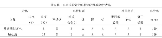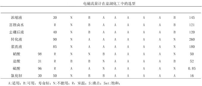 鋰業(yè)公司為鹽湖化工企業(yè),主要生產(chǎn)碳酸鋰硼酸、鉀肥等鹽湖化工產(chǎn)品,原料為曬制鹵水,此鹽湖屬硫酸亞性高鎂鋰比鹽湖,在鹽湖化工生產(chǎn)中產(chǎn)品齊全,也具有代表性。根據(jù)鹽湖化工原料特性,闡述電磁流量計(jì)選型。鹽湖化工原理的特點(diǎn)為電導(dǎo)率高(平均在150ms/cm),強(qiáng)腐蝕,易結(jié)晶。生產(chǎn)過程中所需要的輔料主要強(qiáng)酸、強(qiáng)堿。生產(chǎn)車間的管道都為防腐塑料材質(zhì),生產(chǎn)環(huán)境溫度最高為90℃,最低為-30℃。鑒于以上工況,在鹽湖化工中電磁流量計(jì)比其他流量計(jì)具有精度高、壽命長、維護(hù)方便、性價(jià)比高的有點(diǎn),在鹽湖化工中主要在反應(yīng)釜的定比例投放、貿(mào)易計(jì)量、體積計(jì)量等方面。