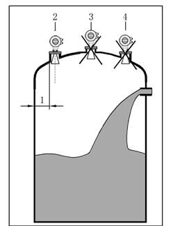 - 如果罐內(nèi)有(1)(2)干涉物件,應(yīng)采用導(dǎo)波管進(jìn)行測量。