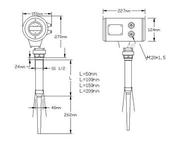 - 如果喇叭直徑大于安裝短管的直徑,包括延伸管在內(nèi)的天線需要從容器里面安裝,并將儀表抬高。選擇延伸管使儀表至少抬高100mm。