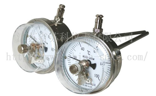 不銹鋼電接點(diǎn)雙金屬溫度計(jì)是利用溫度變化時(shí)帶動(dòng)觸點(diǎn)變化,當(dāng)其與上下限觸點(diǎn)或斷開(kāi)的同時(shí),使電