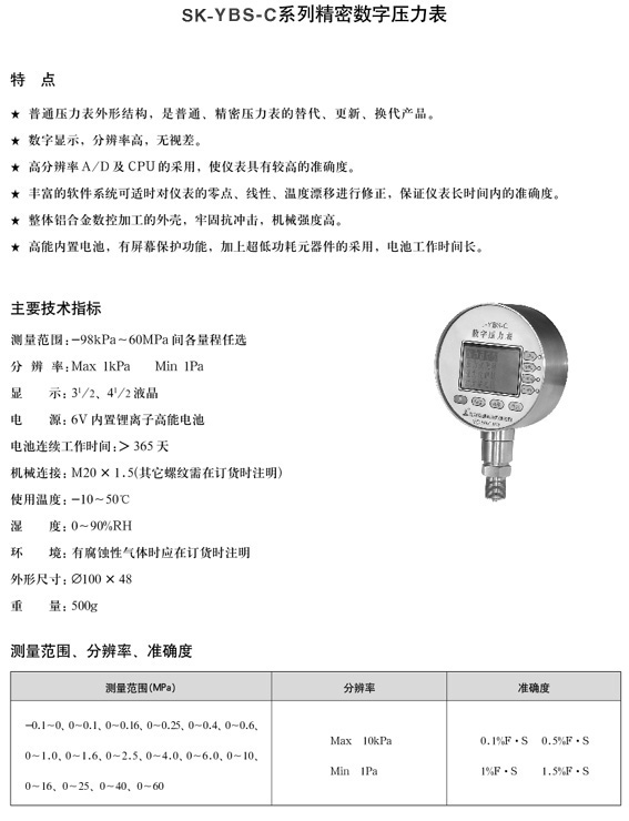 SK-YBS-C系列精密數(shù)字壓力表